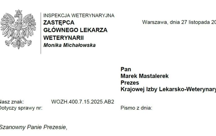 W załączeniu publikujemy pismo Głównego Lekarza Weterynarii Pawła Meyera z dnia 9 grudnia 2025r. w sprawie rekomendacji oraz wdrożenia wniosków po audycie DG Sante oraz ...