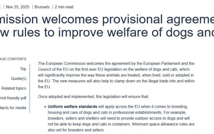 Z satysfakcją informujemy, iż Rada i Parlament Europejski osiągnęły wstępne porozumienie w sprawie dobrostanu i możliwości identyfikacji psów i kotów. Określa ono pierwsze w historii ...