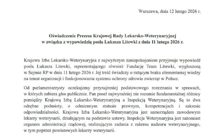 W związku z wypowiedzią Posła na Sejm RP, publikujemy oświadczenie Prezesa Krajowej Rady Lekarsko-Weterynaryjnej. Oświadczenie Prezesa KRL-W w sprawie posła Litewki
