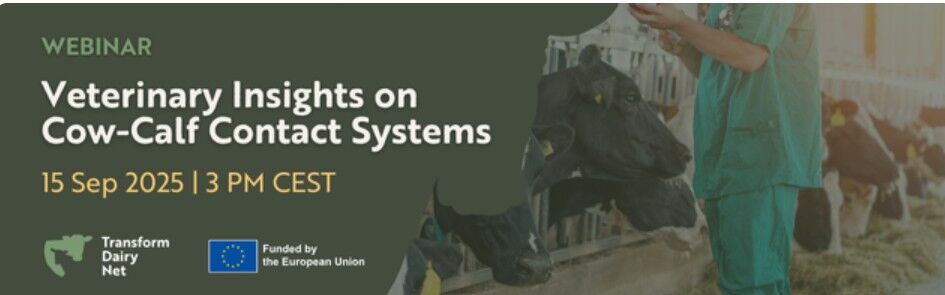Informujemy o możliwości rejestracji na bezpłatny webinar w dniu 15 września 2025 o godzinie 15:00 , który przybliży rolę lekarza weterynarii we wspieraniu chowu bydła mlecznego w systemie CCC (Cow-Calf Contact) Ideą przewodnią tego systemu (co do zasady ekstensywnego) są benefity wynikające z przedłużonego okresu utrzymywania cieląt z krowami.