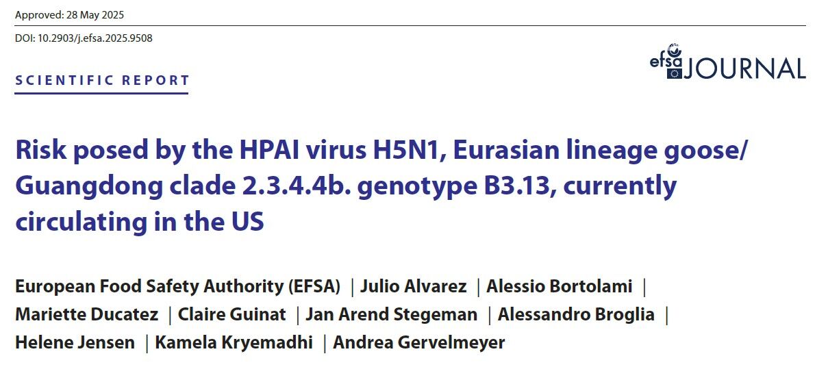 EFSA Journal – 2025 – – Risk posed by the HPAI virus H5N1 Eurasian lineage goose Guangdong clade 2 3 4 4b genotype B3 13